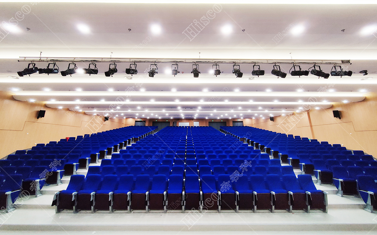 本校报告厅是一个中大型报告厅,主要为举办学校学术会议、演讲、公共大课培训及各种文艺演出,根据其建筑结构特点和使用功能及国家相关标准,根据面积和观看距离选择合适的LED大屏,展现整个舞台的宏伟大气;扩声采用集中与扩散相结合的扩声方式,开会和报告时采用单声道集中扩声还原模式,所有音源都从主席台发出,声像的平衡、方位无倾斜。保证了下面学生听到的直达声响度和均匀度达到要求,让学生听的适宜和舒服。演出时采用左右立体声空间成像模式,直达声与辅助音箱的效果声相结合表演,传达表演意境,使得演员和观众之间产生一种无声的交流。